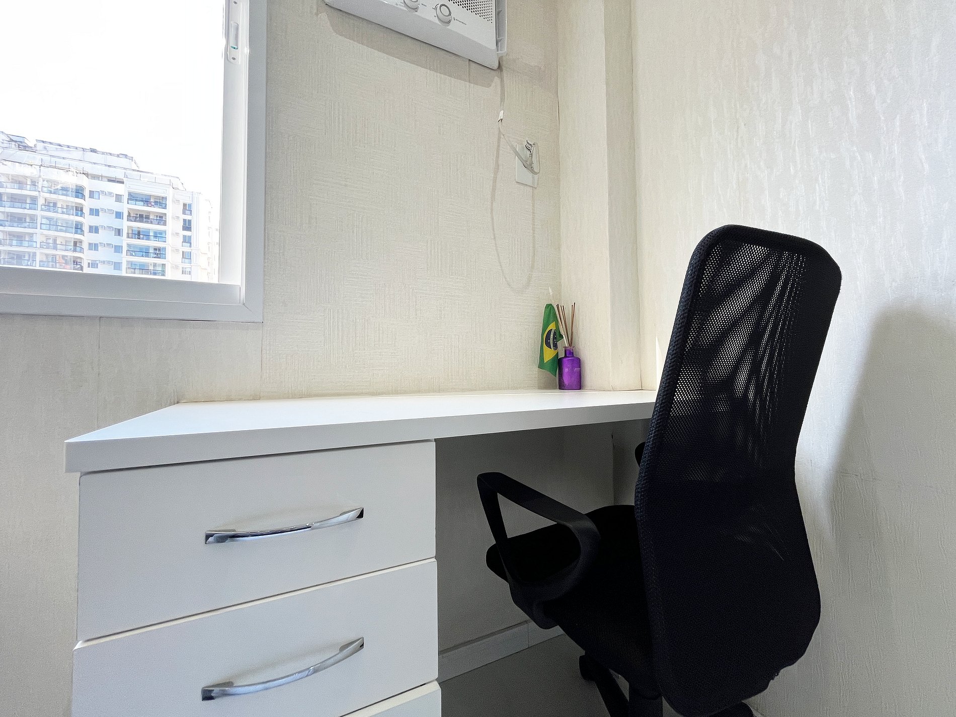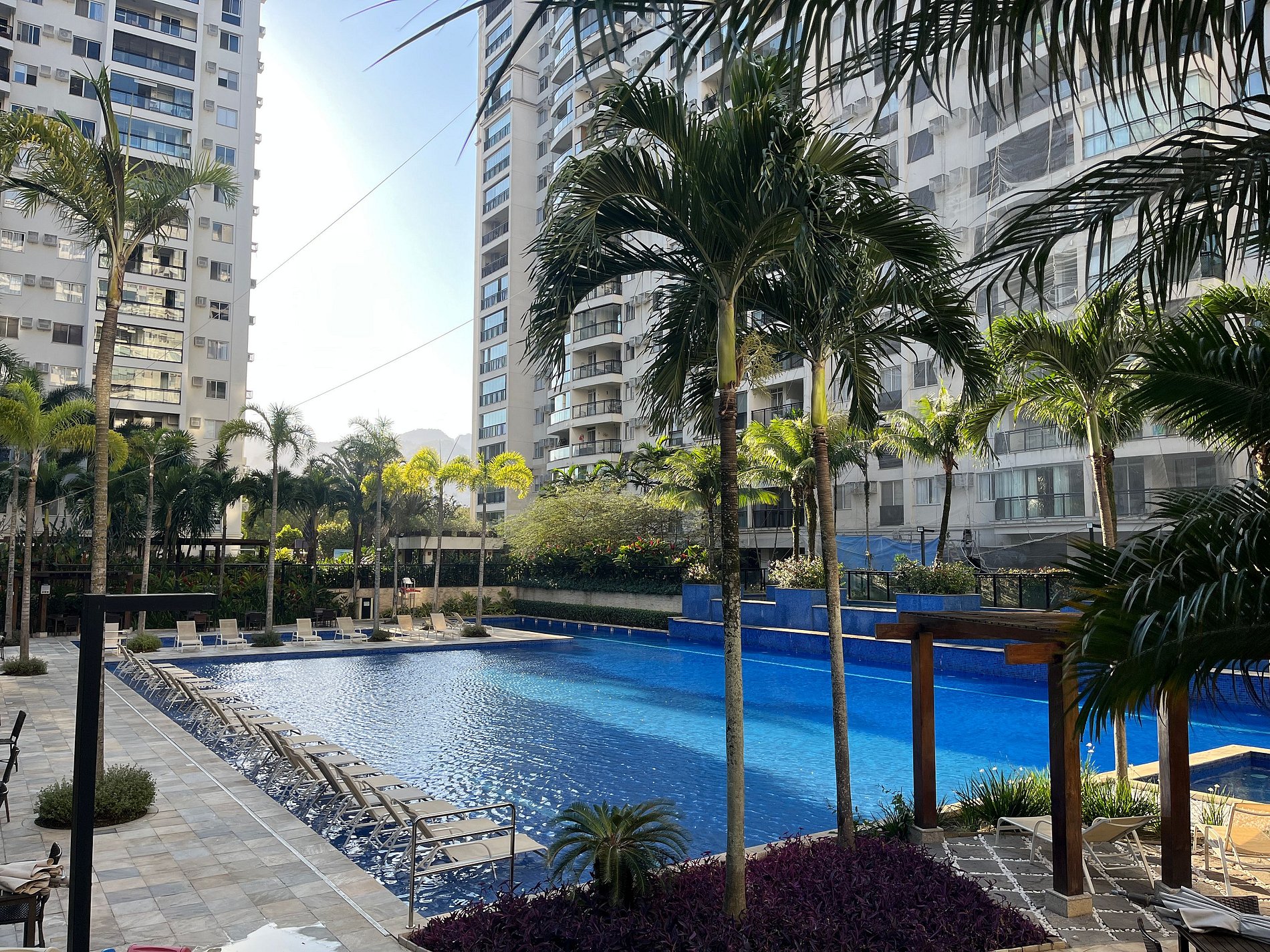 Apartamento moderno e aconchegante, totalmente reformado! Com 2 quartos climatizados, Wi-Fi de alta velocidade, cozinha completa e banheiro equipado, o espaço oferece todo o conforto para a sua estadia. O condomínio é um verdadeiro resort: piscina olímpica, jacuzzi, área de lazer, churrasqueira (mediante reserva e taxa adicional) e serviço de lavanderia pay-per-use. Ideal para quem busca praticidade, conforto e uma experiência completa no Rio!